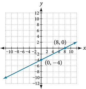 3. The x-intercept is [latex](3, 0)[/latex] and the y-intercept is [latex](0, \frac{9}{8})[/latex].